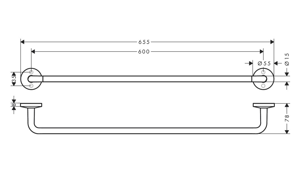 Главная / Каталог / Сантехника / Аксессуары / AXOR UNIVERSAL CIRCULAR Полотенцедержатель, 600 мм, матовый черный