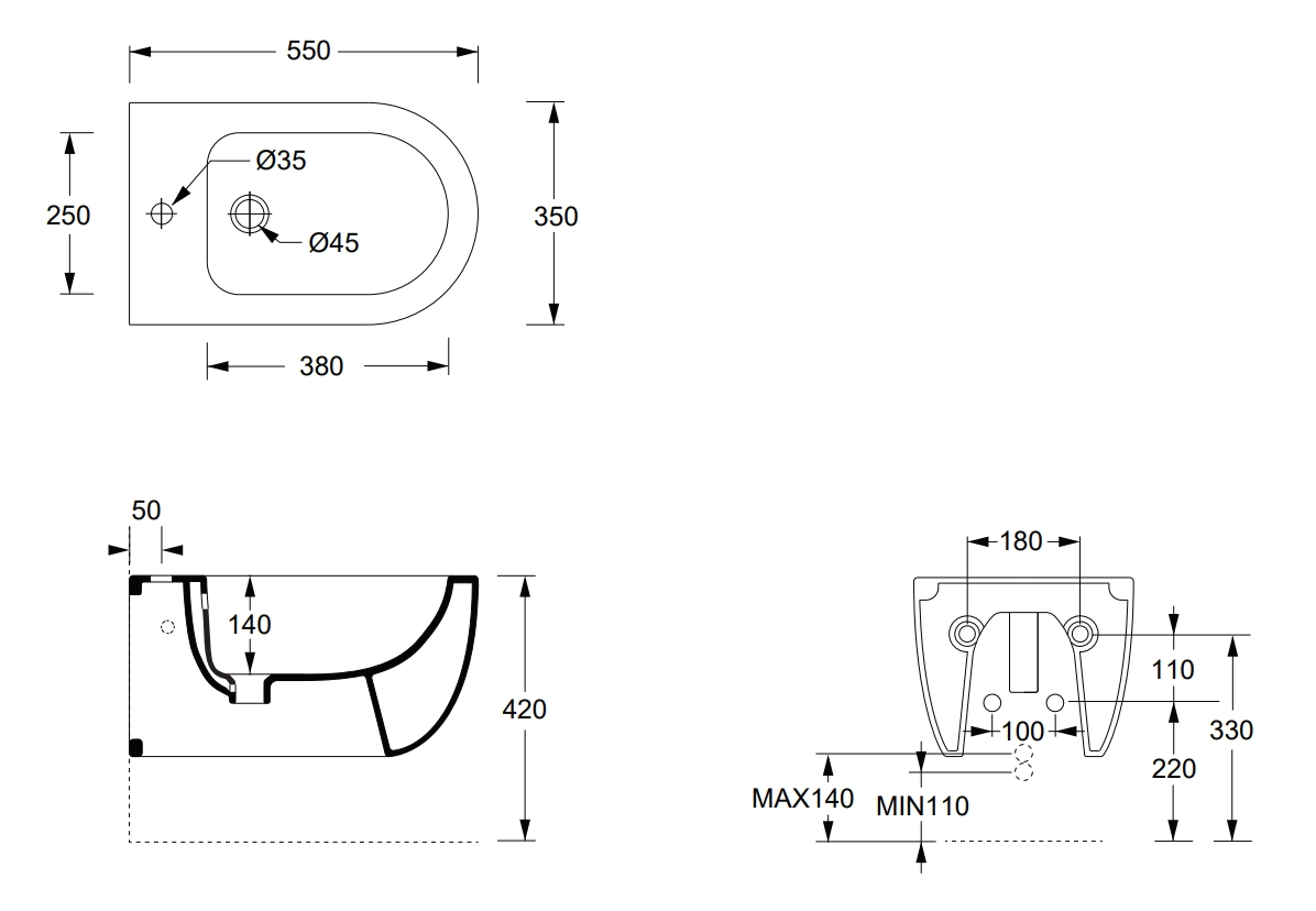 ALICE UNICA Биде подвесной 55х35 см, форма-круг, белый глянцевый