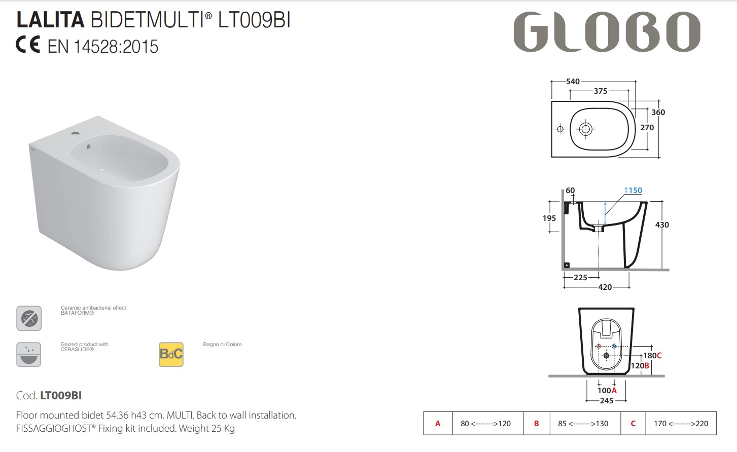 Главная / Каталог / Сантехника / Биде / GLOBO LALITA Биде напольное 54х36хh43, белый