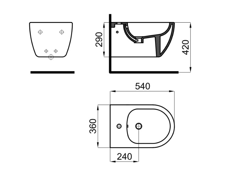 Главная / Каталог / Сантехника / Биде / NOKEN ARQUITECT Биде подвесное с креплениями, 533х367 мм, белый