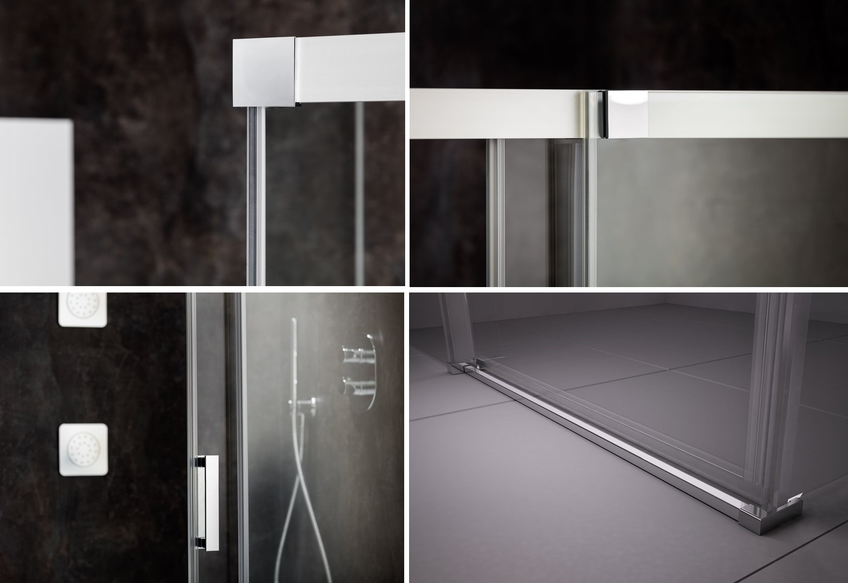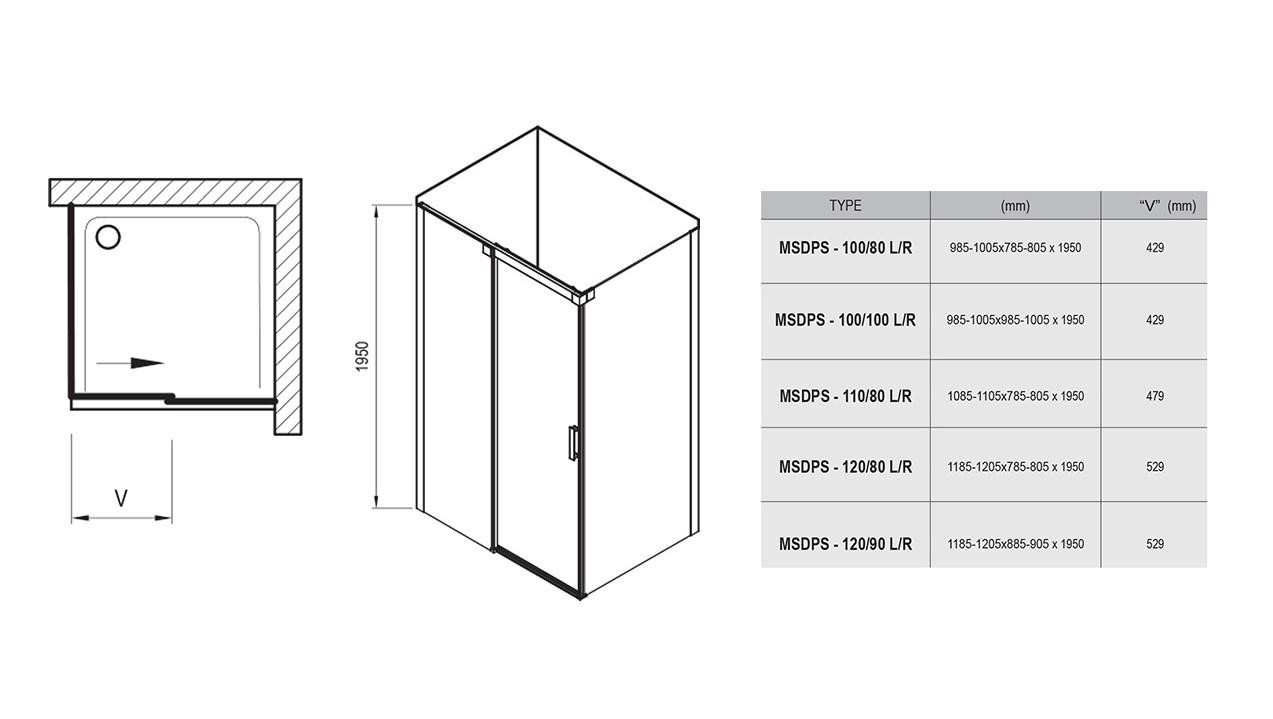 Изделие состоит из двухэлементных душевых дверей (одна неподвижная часть и одна подвижная часть, образующая раздвижные двери) и одноэлементной неподвижной стенки. Левый или правый варианты открывания дверей определяются тем, на какой стороне, при виде снаружи, находятся петли. Устанавливается в облицованный кафелем угол ванной комнаты на поддоны Perseus Pro Chrome, Gigant Pro Chrome или непосредственно на пол со встроенным душевым каналом или трапом.