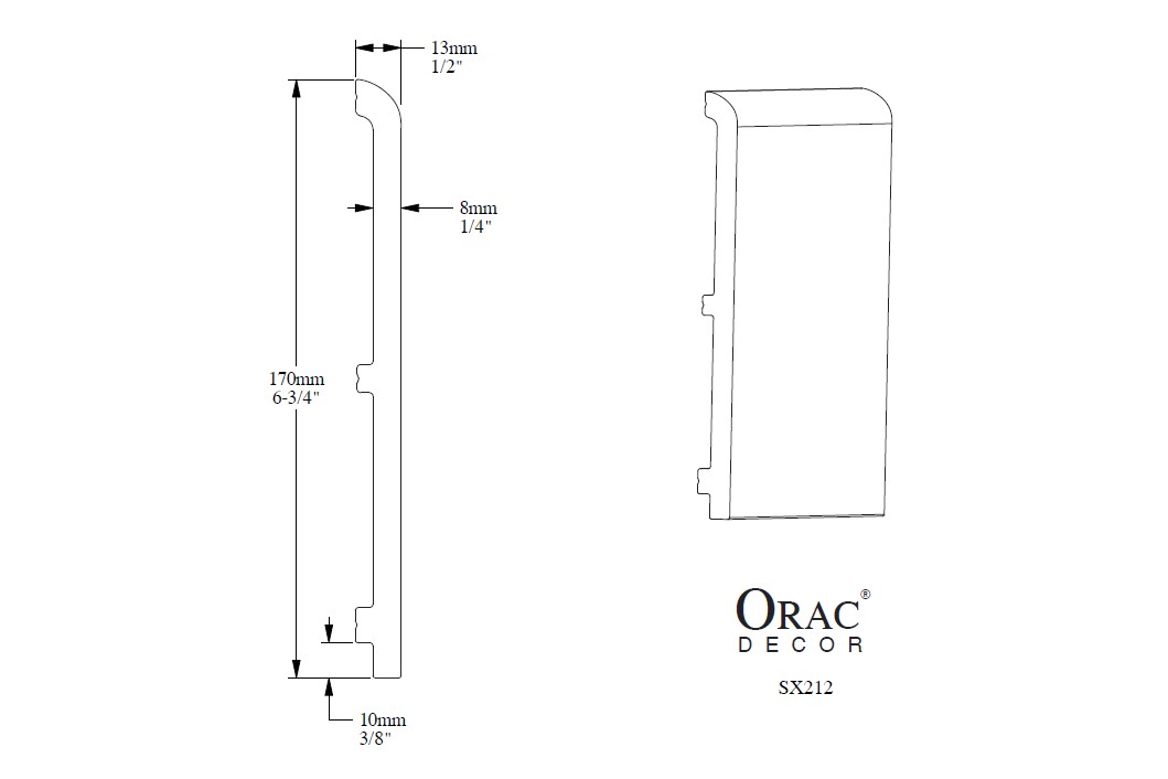 В качестве привычного плинтуса Orac предлагает дизайн SX212. Это высокая и лаконичная модель c немного закругленным краем впишется в интерьеры любого стиля.