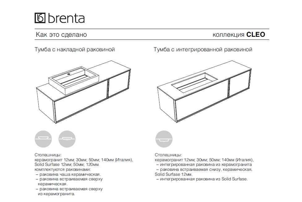 Главная / Каталог / Сантехника / Мебель / BRENTA CLEO CL02 Тумба под раковину слева, 140х49.6хH40 см, подсветка дна, Wxx/Zxx