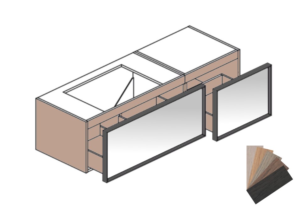 Тумба подвесная с двумя выдвижными ящиками и фасадами в алюминиевой рамке, модуль под раковину слева