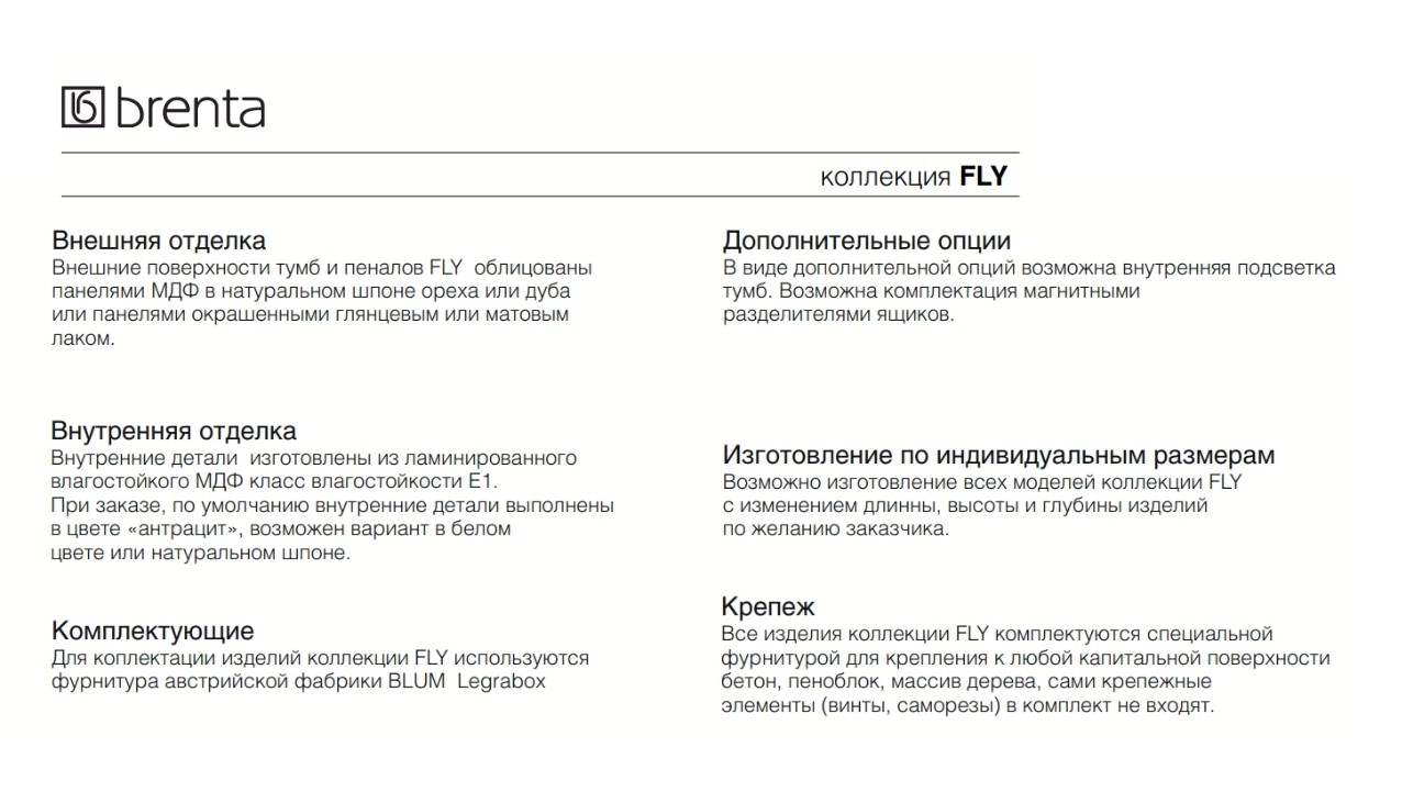 Главная / Каталог / Сантехника / Мебель / BRENTA FLY FL01 Тумба подвесная с одним выдвижным ящиком, L100хP49,6хh44 см, MZZ Матовый лак