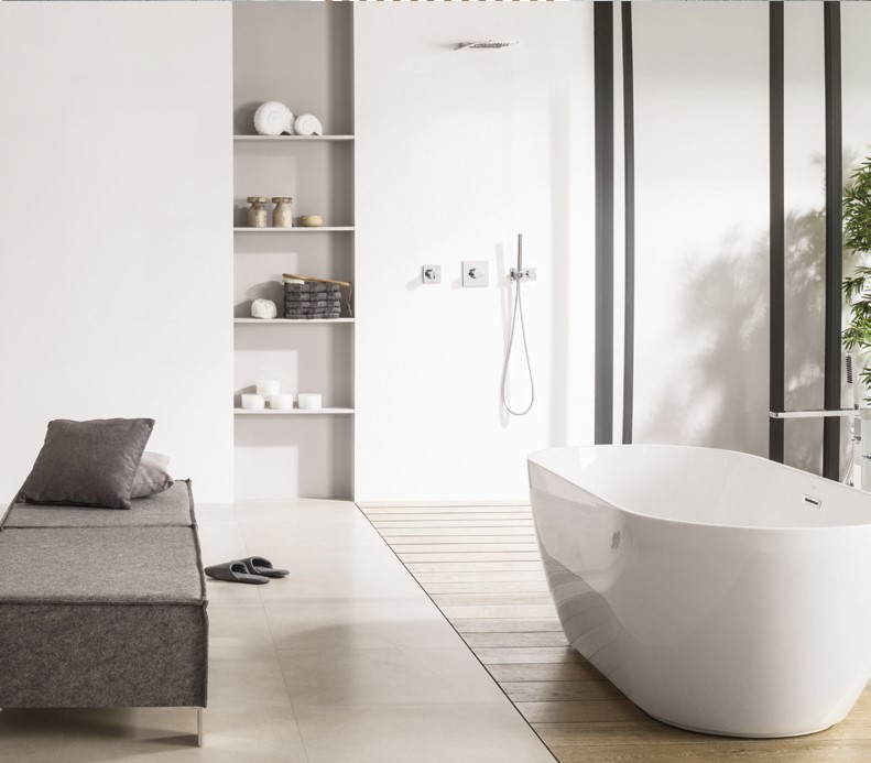 Компания Butech разработала скрытые душевые поддоны Shower Deck. Благодаря этим инновационным моделям душ кажется продолжением напольного покрытия, в котором вода стекает через открытые швы между напольной плиткой, оставаясь на той же высоте, что и остальной пол. Подходит для плитки из керамогранита толщиной не менее 6 мм, особенно рекомендуется для моделей XLIGHT и STONKER L от PORCELANOSA.