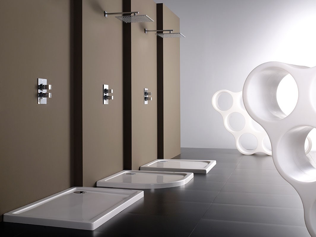 Акриловые душевые поддоны с прямыми и объемными линиями. Их наибольшим преимуществом является доступность разнообразных вариантов исполнения, позволяющих адаптироваться под все типы ванных комнат: от квадратного или прямоугольного, до угловых форматов с изогнутыми или прямолыми формами, а также широкого выбора размеров.