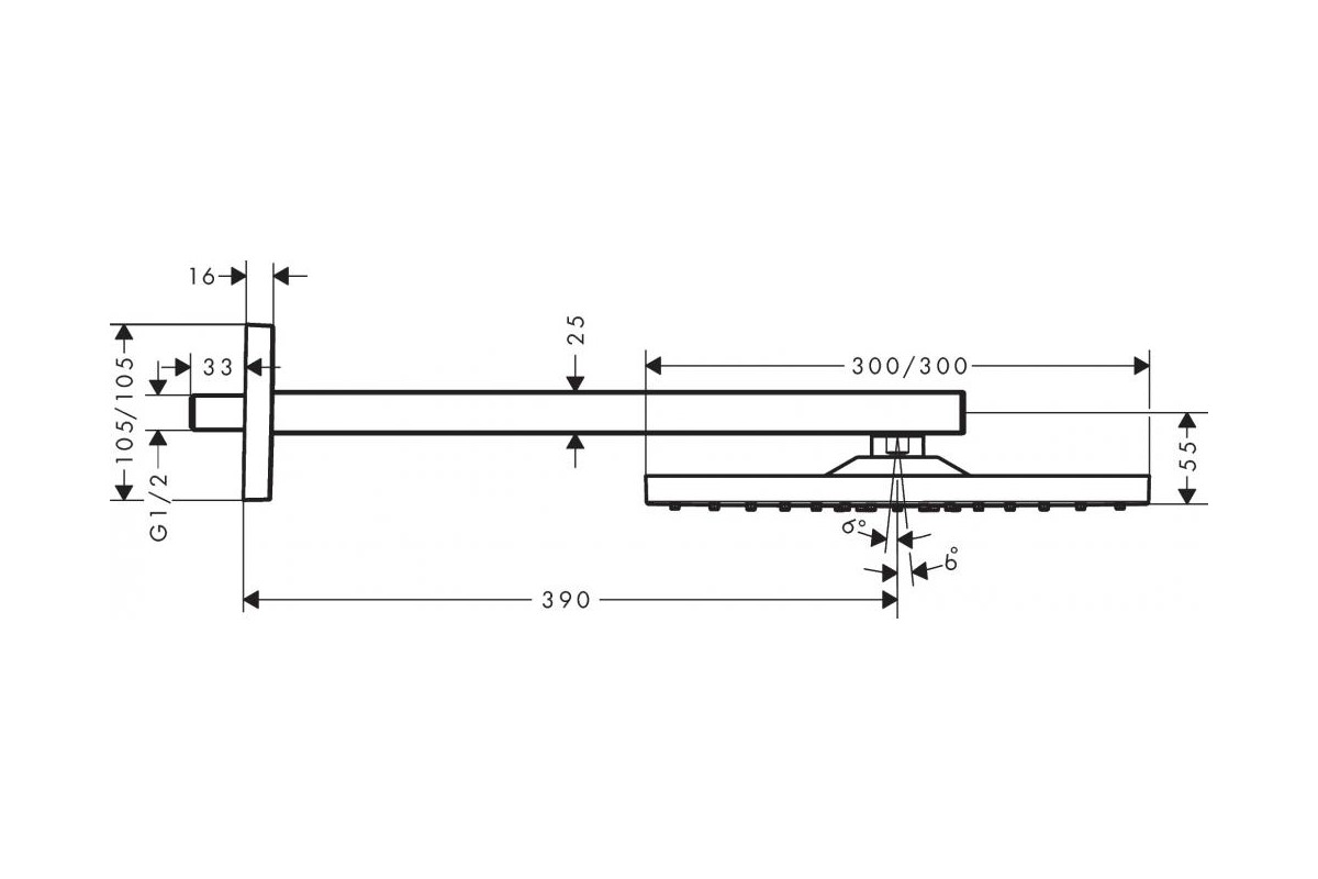 • размер душевого диска: 300 x 300 мм
