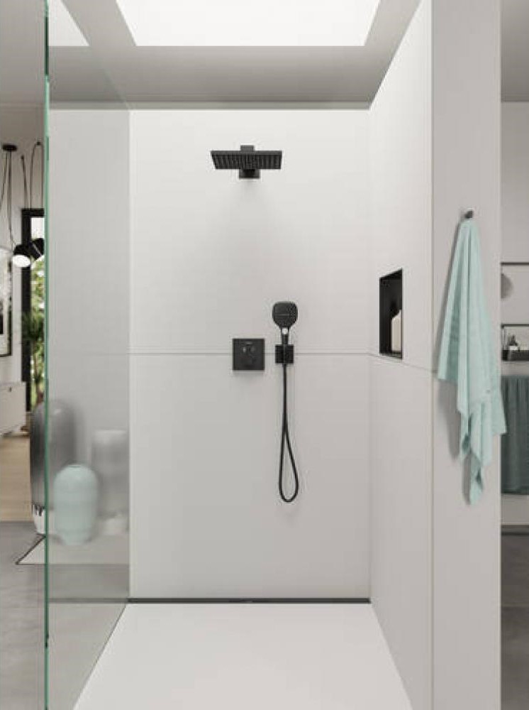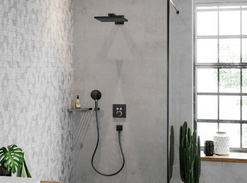 Главная / Каталог / Сантехника / Программа для ванны и душа / HANSGROHE Raindance E Верхний душ 300x300 мм 1jet с держателем 390 мм, матовый чёрный