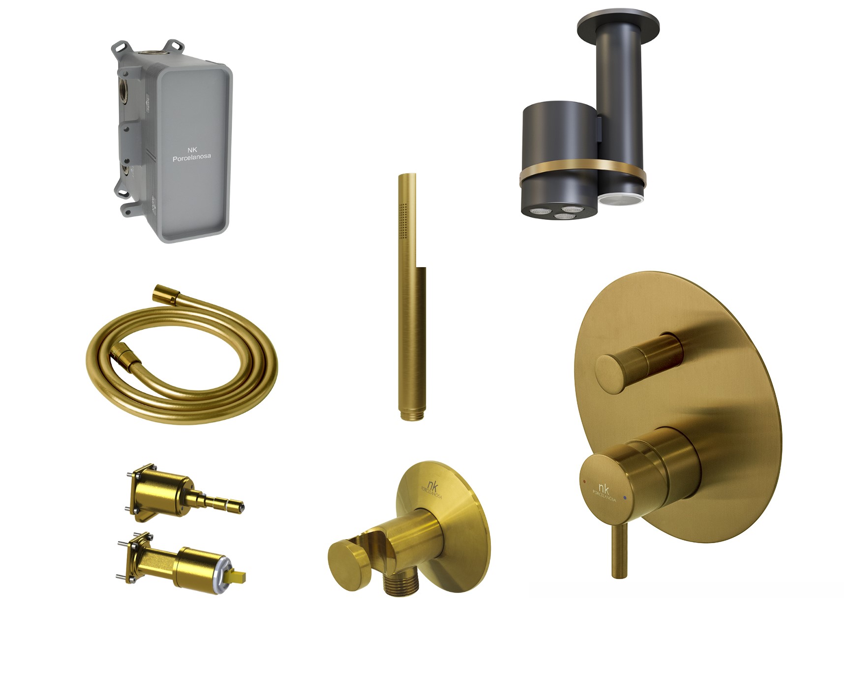 1) 100299401, NOKEN LIGNAGE Настенный держатель для ручного душа с подводом воды, браш. золото