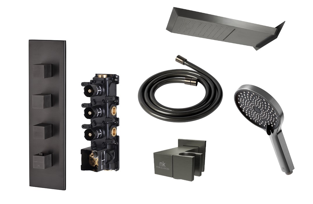NOKEN PACK OXO Душевой комплект с термостатом, верхний душ, брашированный титан