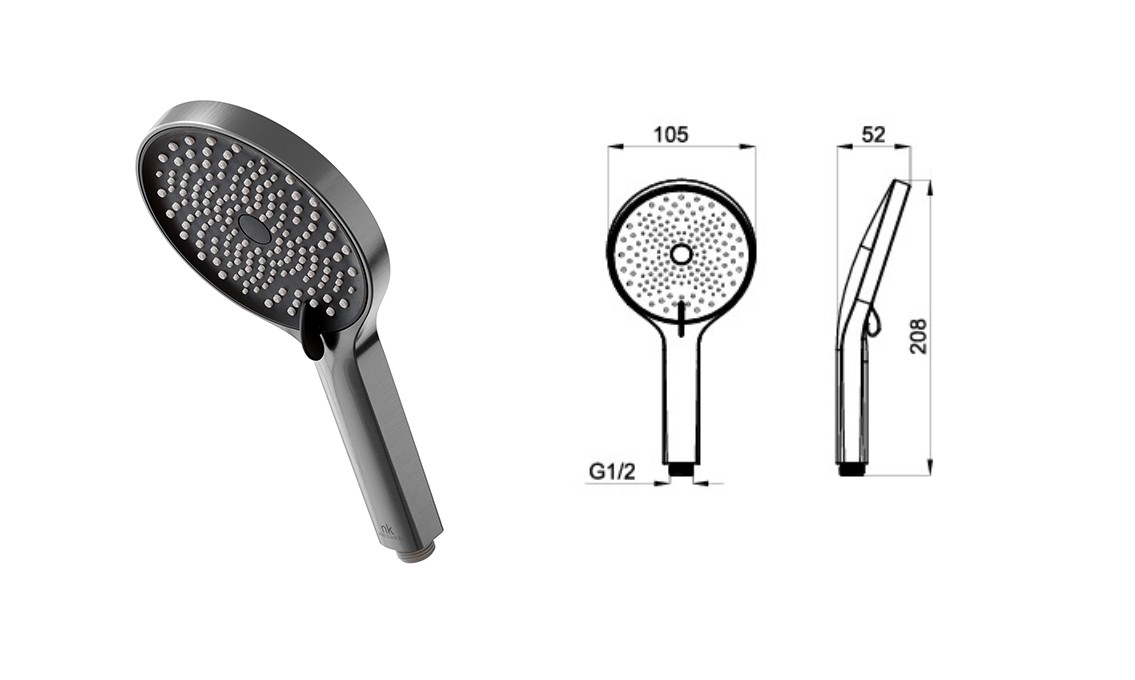 100344485 NOKEN OXO Ручной душ с 3 функциями дождя и переключателем, 7,5 л/мин, браш. титан
