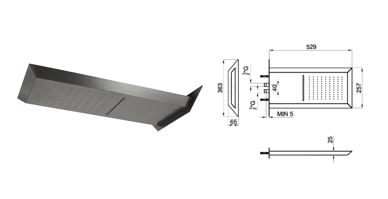 100284315 NOKEN OXO Верхний душ из стены c каскадом, 529х363 мм, 11,9 и 12,1 л/мин, браш. титан