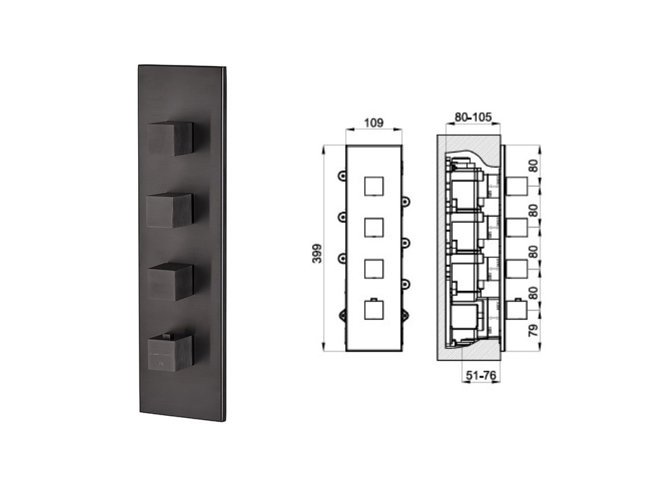 100282718 NOKEN OXO Внешняя часть термостатического смесителя на 3 выхода, браш. титан