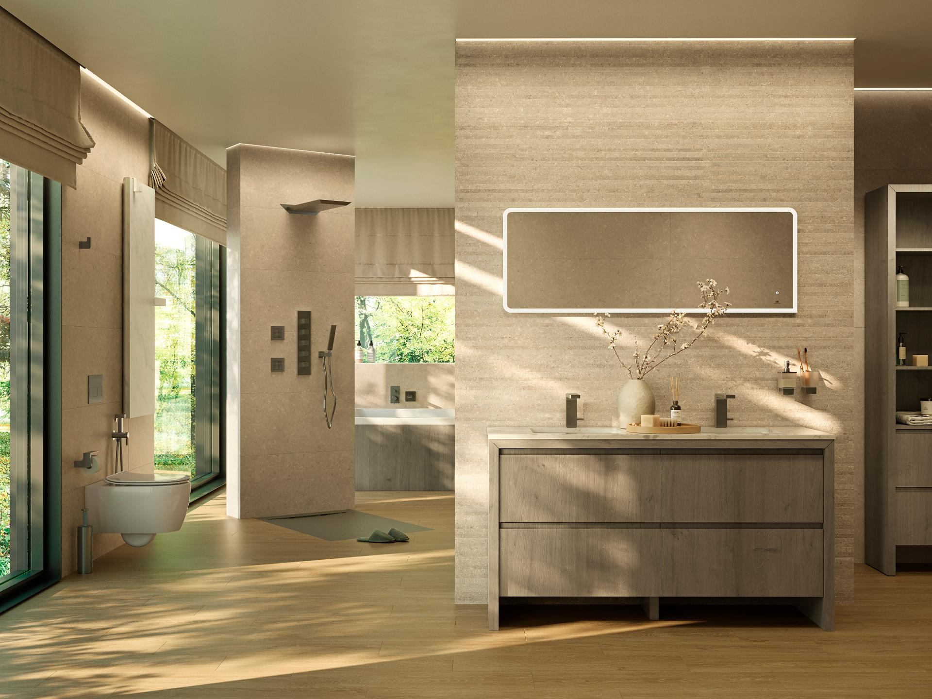 NOKEN PACK OXO Душевой комплект с термостатом, верхний душ из стены c каскадом, 529х363 мм, брашированный титан