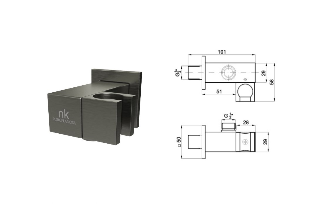 100280696 NOKEN COTA Настенный держатель для ручного душа, с подводом воды, браш. титан