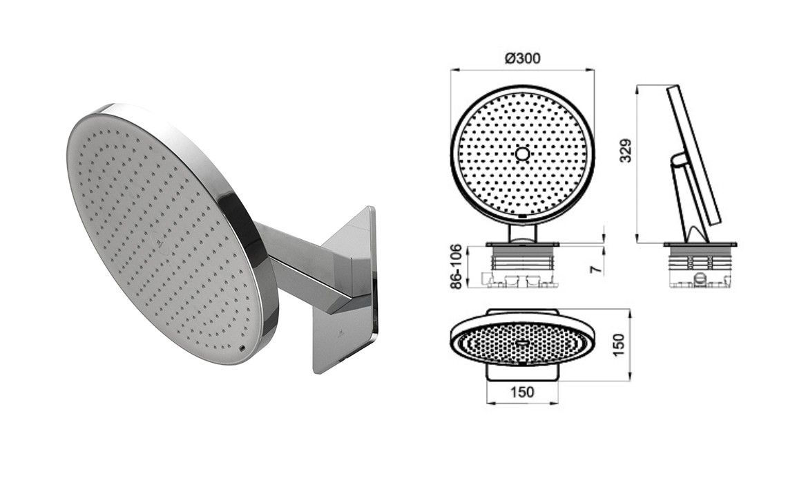100360840 NOKEN PLUMP Верхний душ с держателем 300 мм, 17,52 л/мин., хром