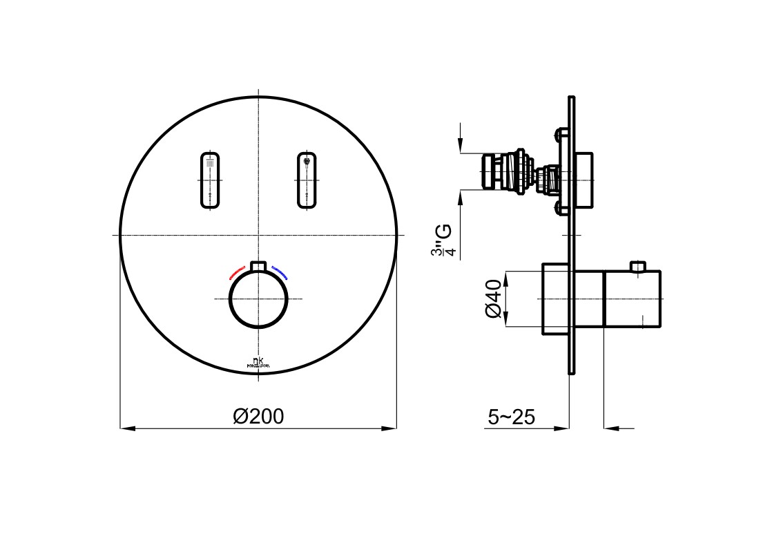 NOKEN TOUCH&FEEL Термостатический смеситель на 2 выхода, 21 л/мин, черный матовый