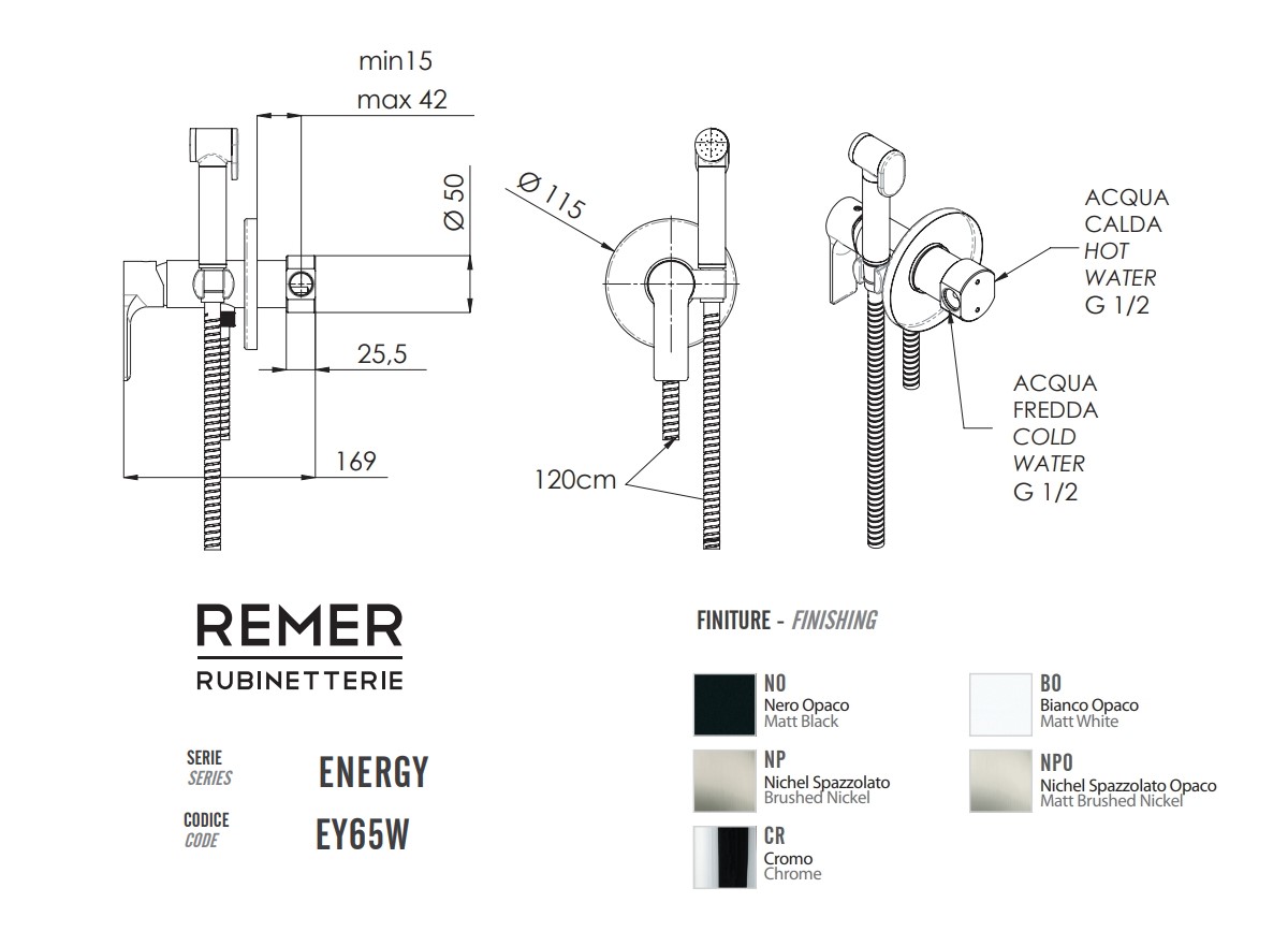 Главная / Каталог / Сантехника / Программа для ванны и душа / REMER ENERGY Гигиенический душ со смесителем, matt black