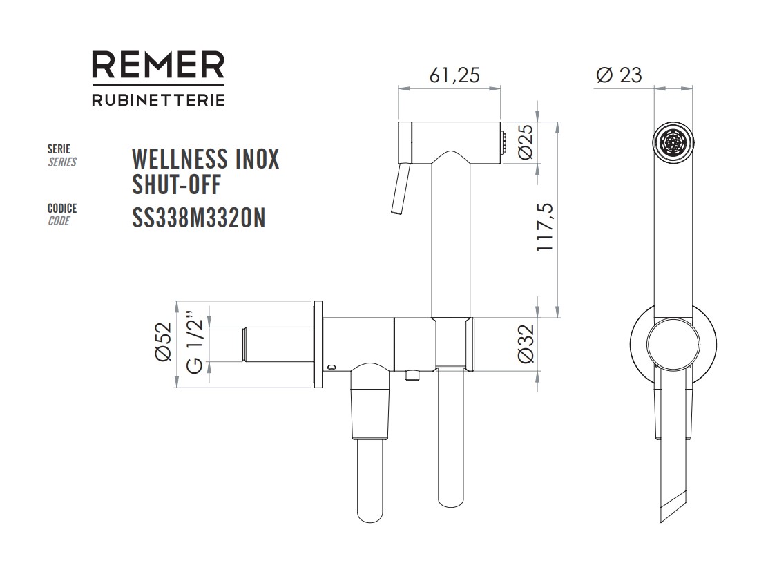Главная / Каталог / Сантехника / Программа для ванны и душа / REMER X STYLE Гигиенический душ, БЕЗ смесителя, 120 см, INOX