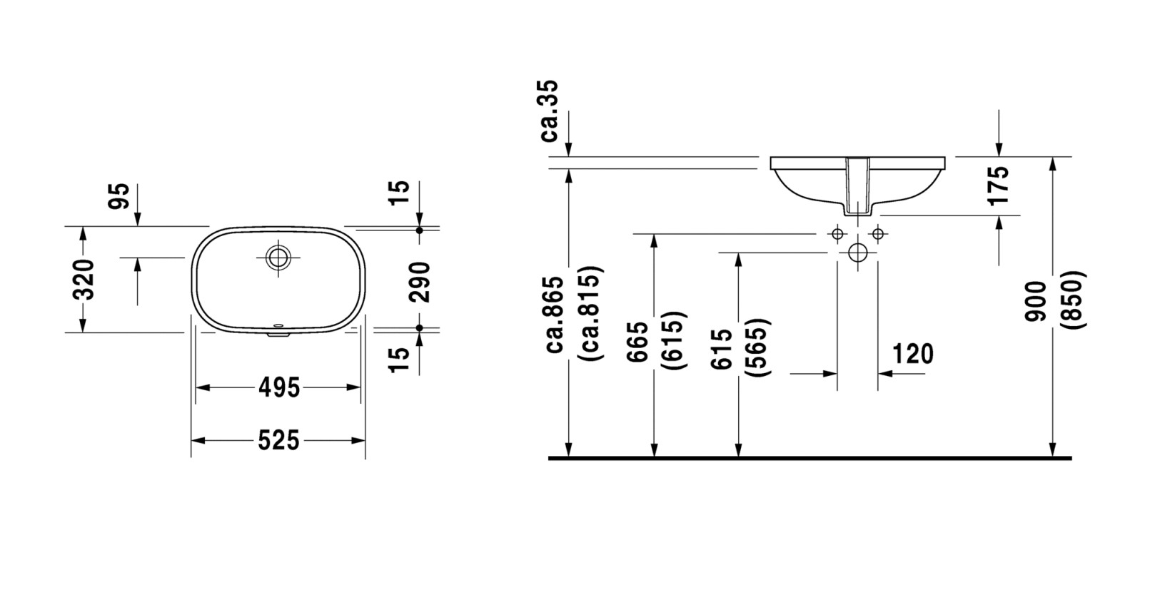 DUR D-CODE Раковина встраиваемая с переливом, без площадки под смеситель, 495x290 мм, белый