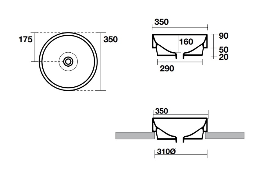 Главная / Каталог / Сантехника / Раковины / KERASAN CENTO Умывальник круглый 35 см, накладной или встраиваемый, белый