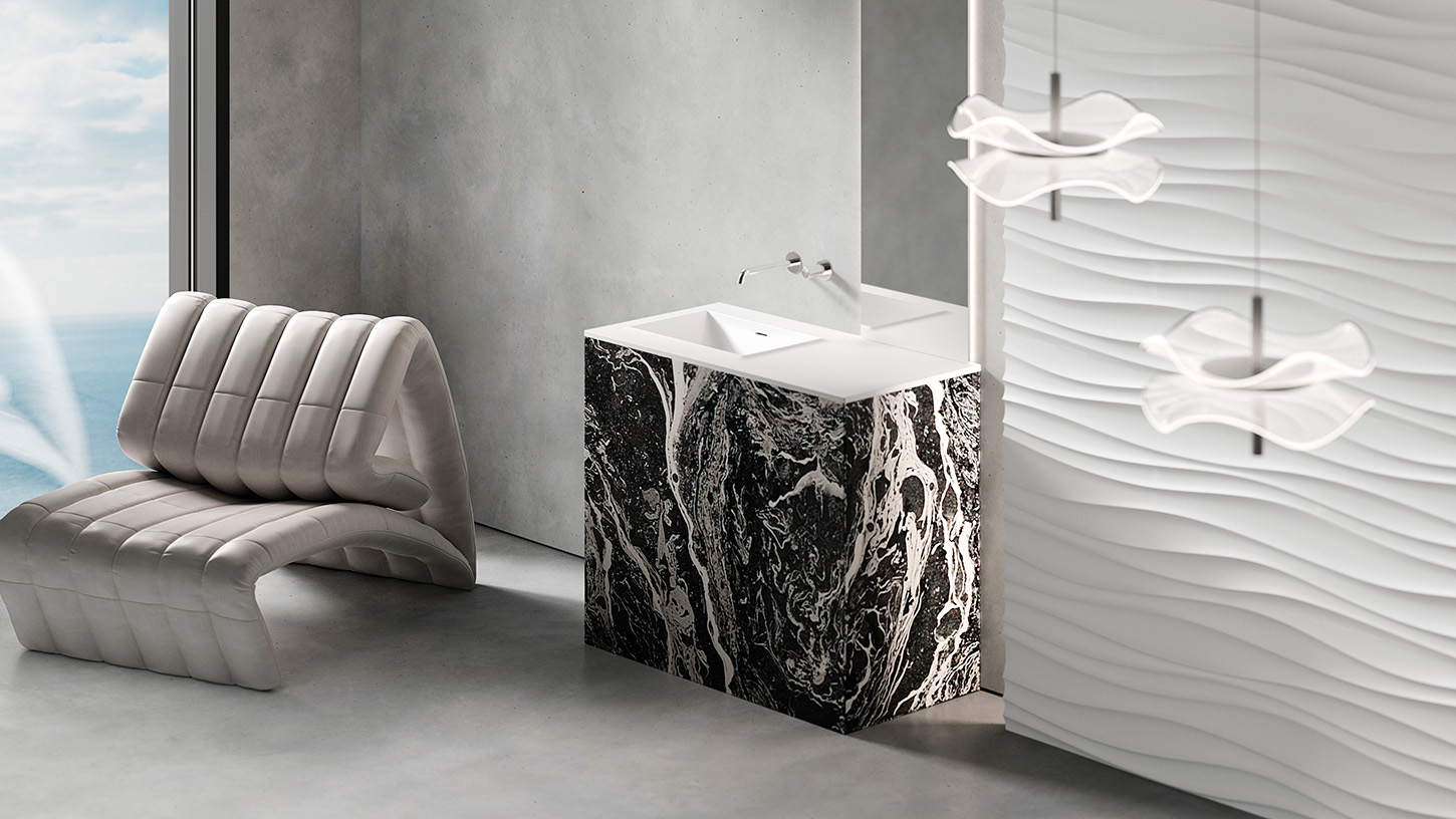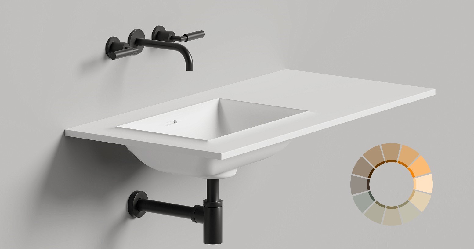 В зависимости от особенностей конкретного интерьера ванной комнаты и, исходя из желаний заказчика, для подвесных раковин ONDA мы можем: