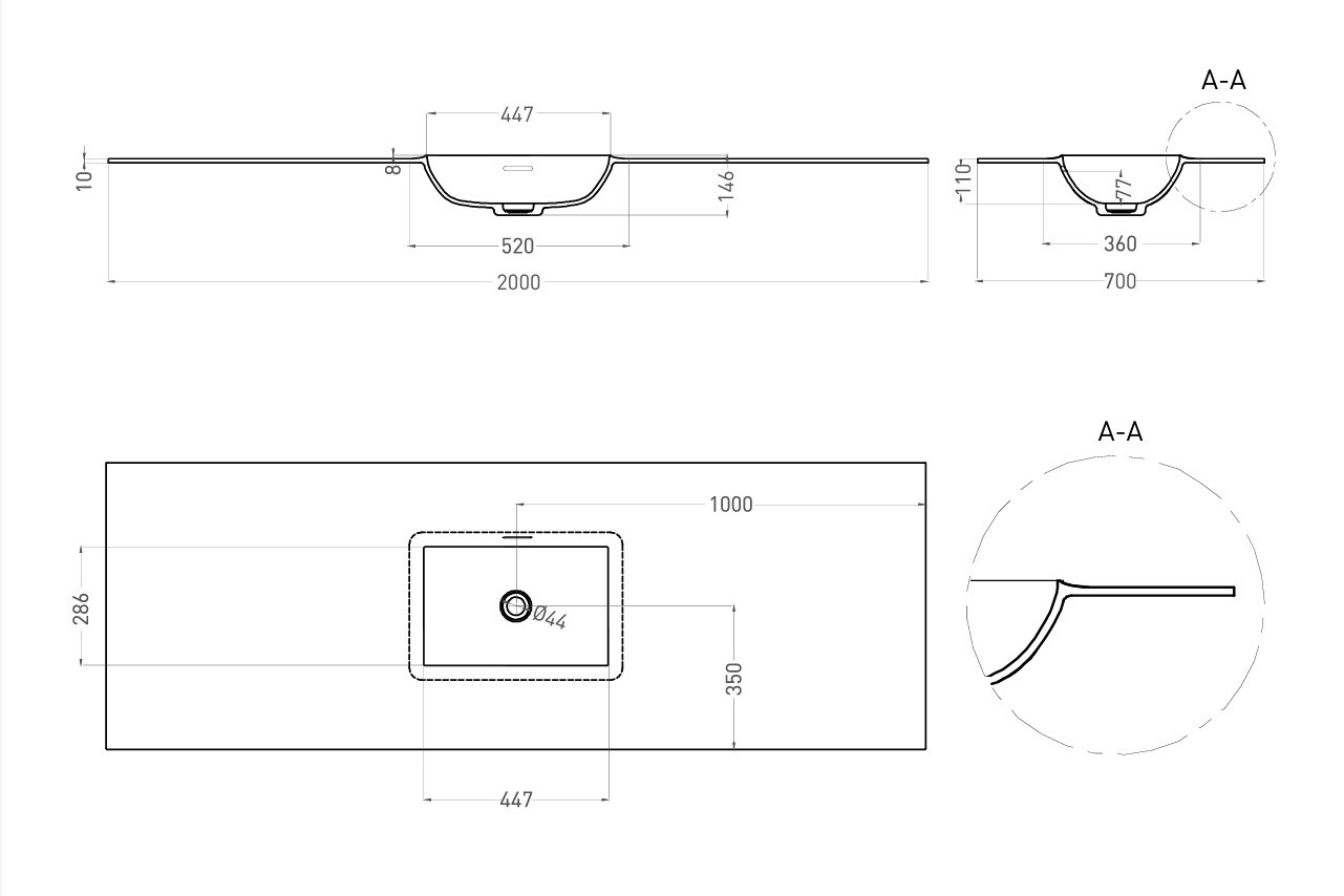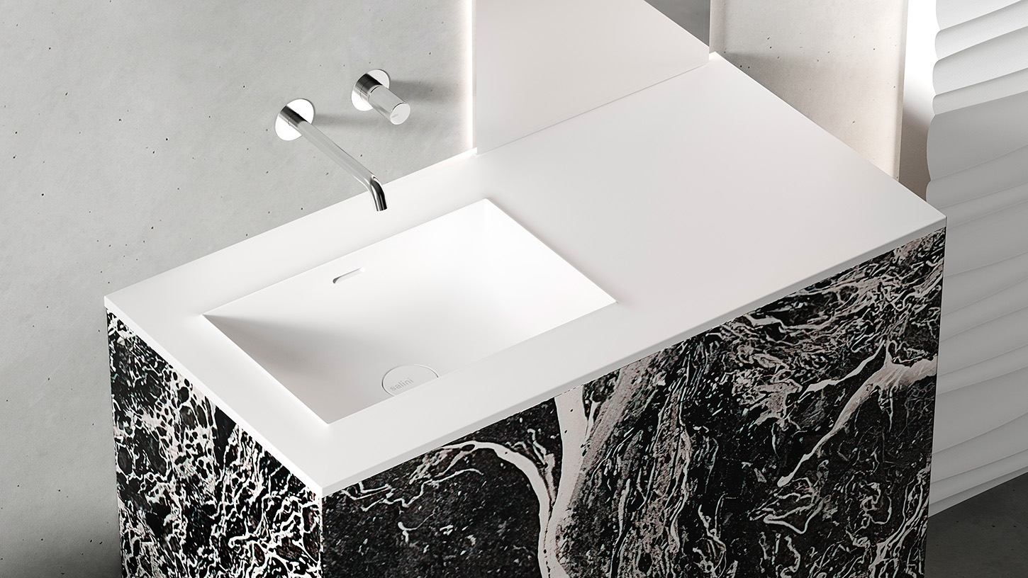 Главная / Каталог / Сантехника / Раковины / Salini ONDA EDGE SQUARE Столешница до 2000х700х10 мм с раковиной 520х360, ДК, S-Stone- RAL матовый