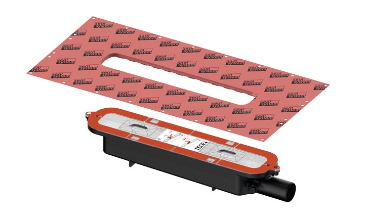 Сифон для душевого профиля TECEdrainprofile для установки в бетонной стяжке. Для горизонтального подсоединения канализационной трубы DN 40. Установленная на заводе гидроизоляционная манжета SealSystem с защелкой для монтажа в композитной гидроизоляции в соответствии с DIN 18534