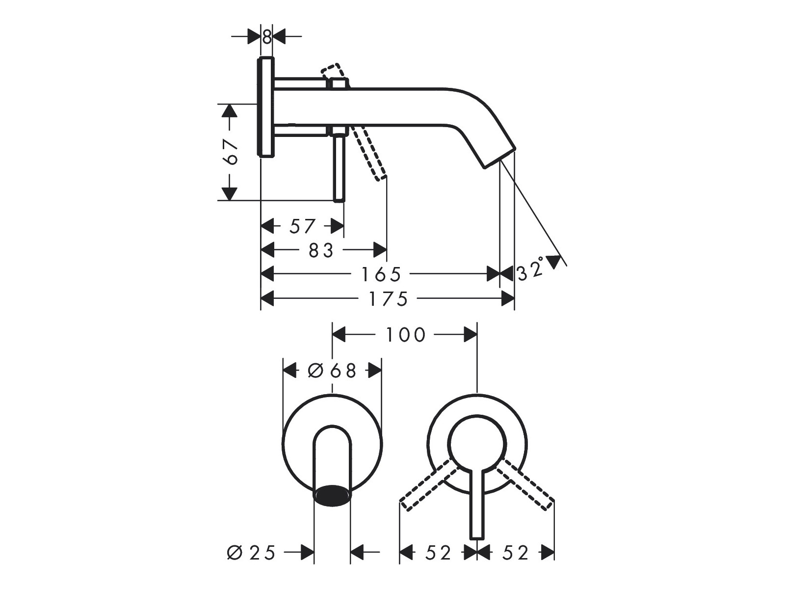 Главная / Каталог / Сантехника / Смесители / HANSGROHE TECTURIS S Смеситель для раковины из стены на 2 отверстия, излив 16,5 см, хром
