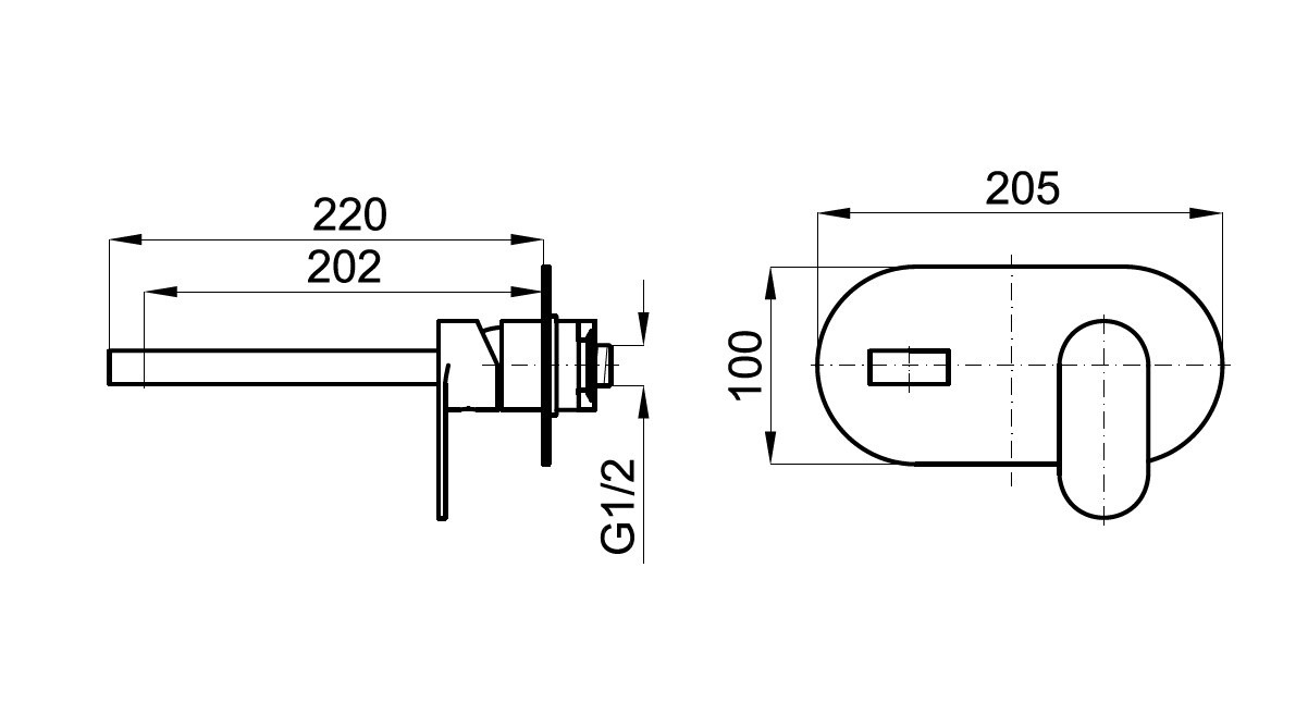 Внешняя часть встроенного смесителя для раковины с керамическим картриджем 35 мм. Без донного клапана. Пропускная способность воды при 3 барах - 5 л/мин. Возможность горизонтального и вертикального монтажа.