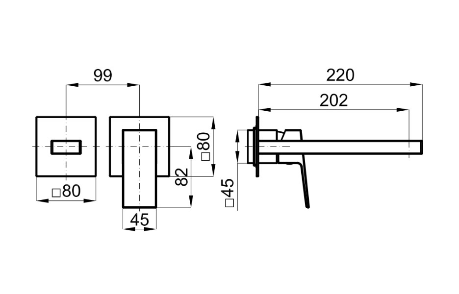 NOKEN SQUARE Внешняя часть, встроенного смесителя для раковины, излив 220 мм, черный