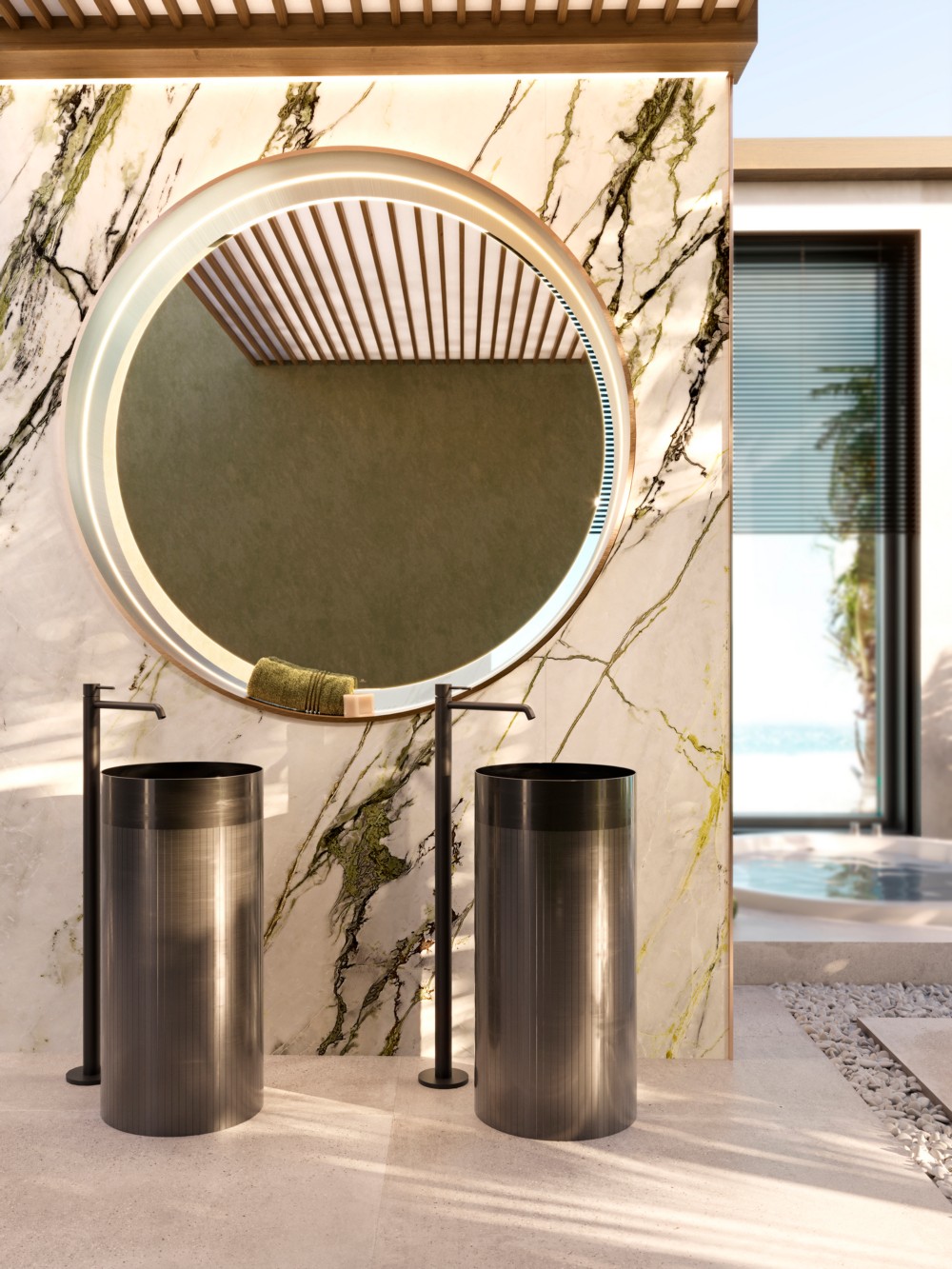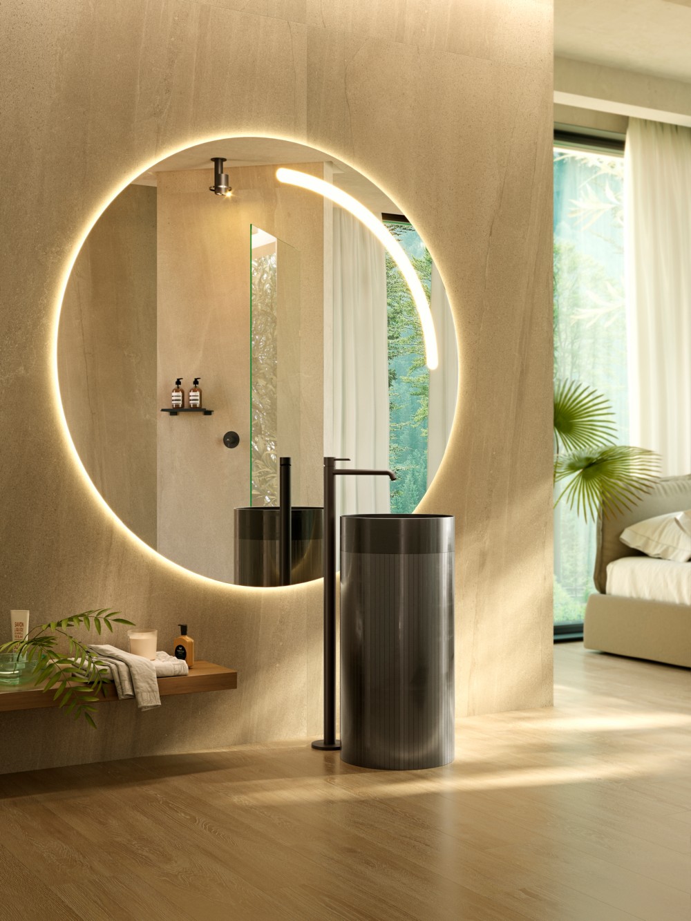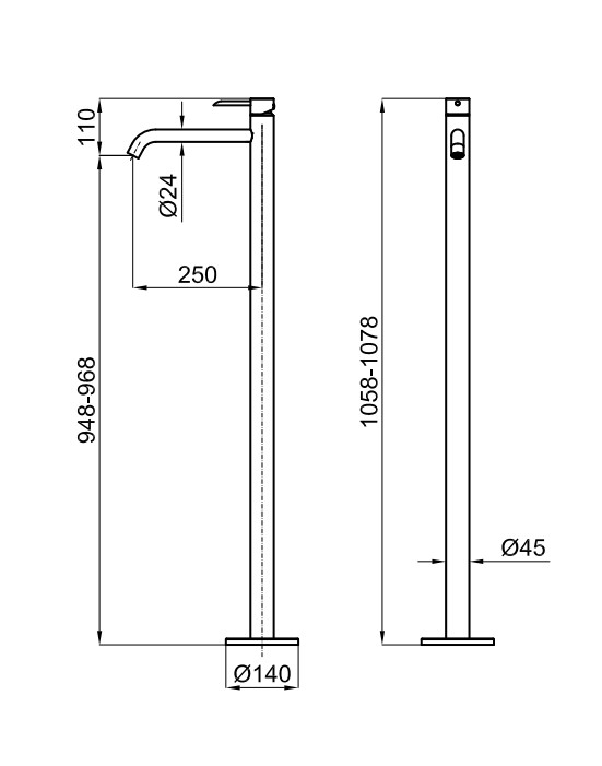 NOKEN ROUND Внешняя часть напольного смесителя для раковины, 5 л/мин, вылет 250 мм, черный матовый