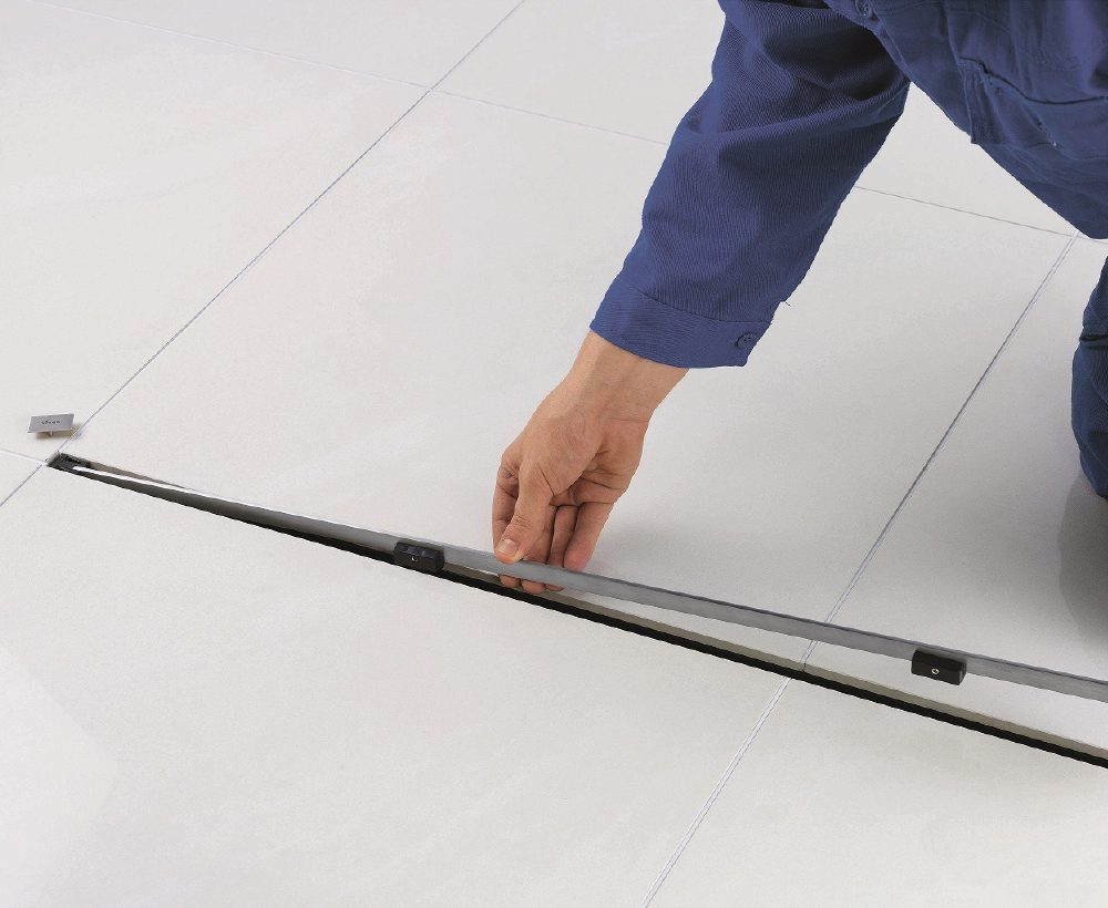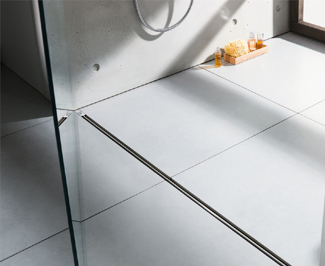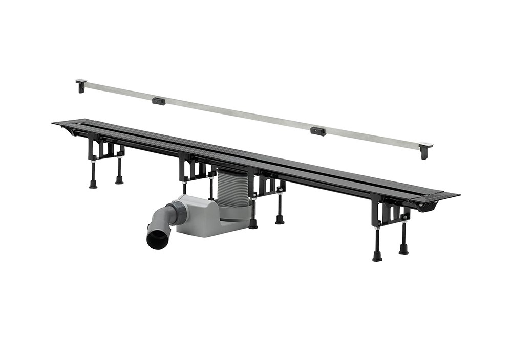 (!) Для данной модели трапа, покрытие пола цементной стяжкой достаточной толщины не представляется возможным в случае использования максимально низкой строительной высоты из всех возможных. Проектировщикам необходимо это учитывать заранее. Одним из возможных решений на месте может быть изменение размера плитки и/или возможность цементации с эпоксидной смолой. Данные решения должны быть заранее предусмотрены в смете. Контроль качества согласно DIN 1253