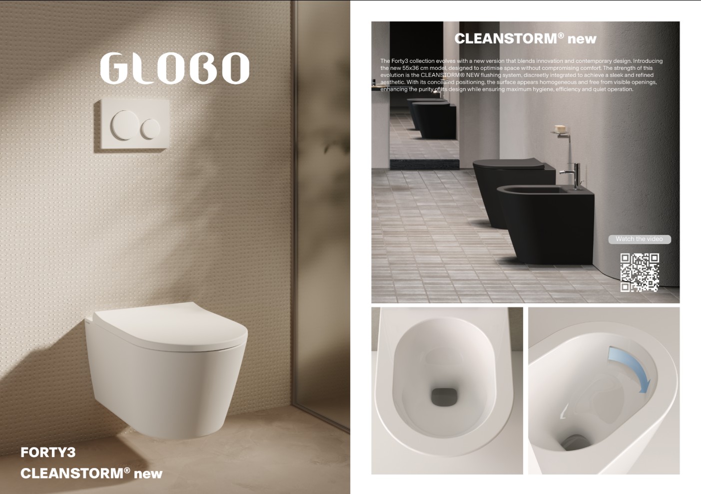 Главная / Каталог / Сантехника / Унитазы / GLOBO FORTY3 Унитаз подвесной 55x36 см, с системой Cleanstorm, BI Bianco