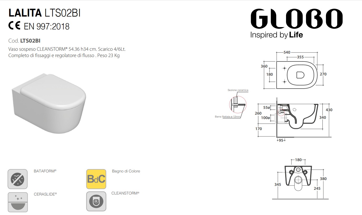 Главная / Каталог / Сантехника / Унитазы / GLOBO LALITA Унитаз подвесной безободковый 54х36хh34, белый