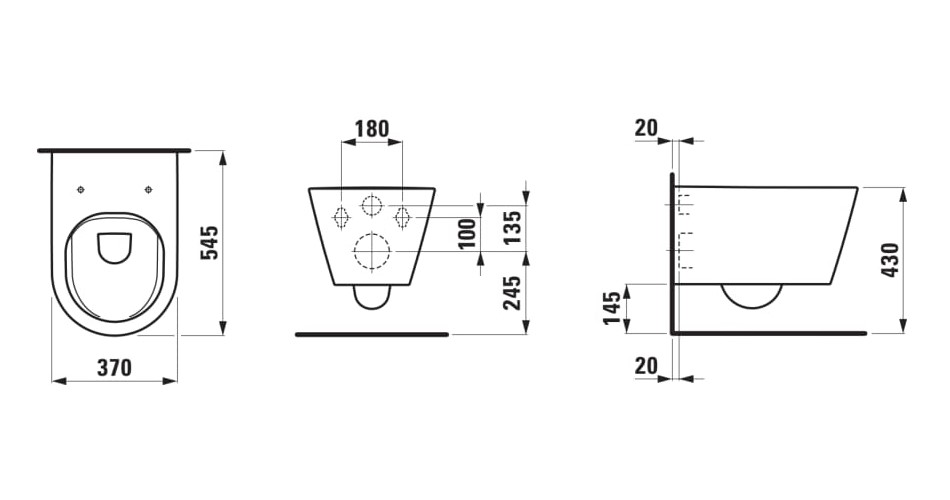 1. 8.2033.7.000.000.1 – LAU KARTELL Подвесной унитаз, безободковый смыв Rimless, 545x370 мм, белый