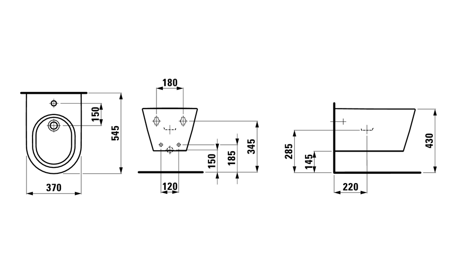3. 8.3033.1.000.302.1 – LAU KARTELL Биде подвесное 545x370 мм, 1 отв., белый