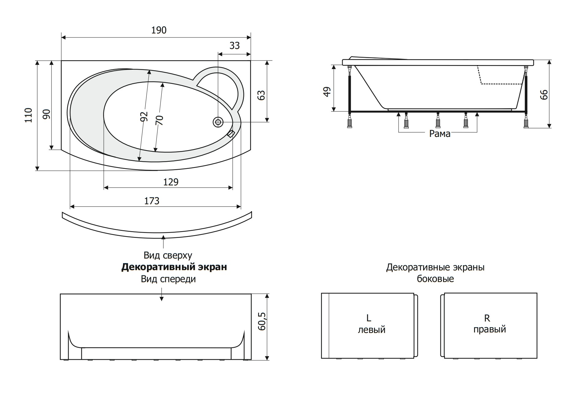 4. GNT Панель торцевая для ванны BOHEMIA_190x110 см, 90 см, белый (2 шт.)