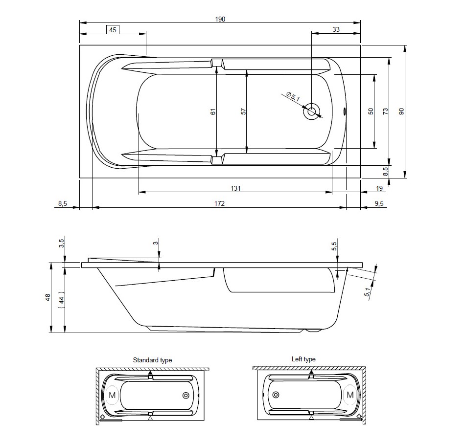 Главная / Каталог / Сантехника / Ванны / RIHO FUTURE Ванна акриловая прямоугольная, 190х90 см, 290 л, белый