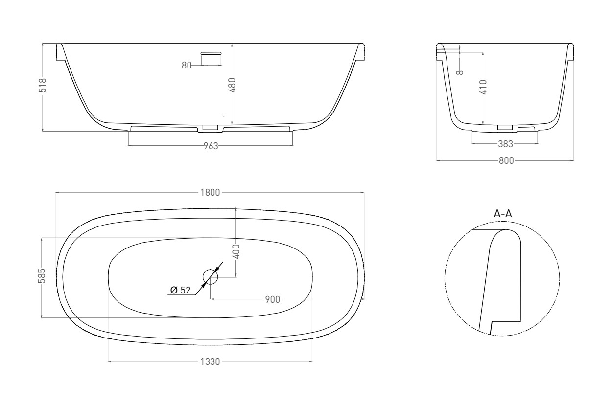 Отдельностоящая ванна GRECA IN сохранила стандартную глубину, став при этом ниже. Благодаря такой конструкции заходить в ванну теперь ещё удобнее. Для установки ванны GRECA IN требуется приямок. Дополнительный подиум не предусмотрен.
