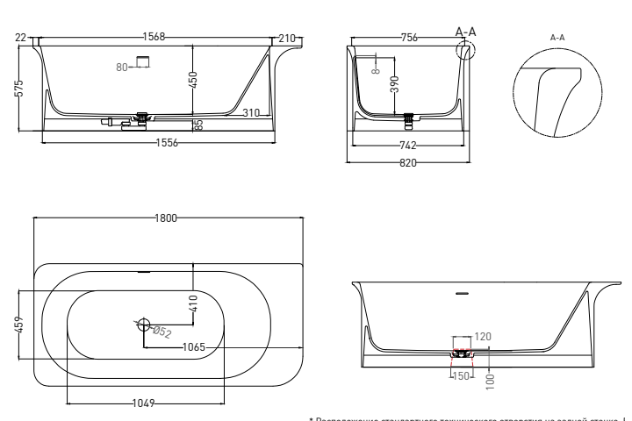 • Ванна (1800х820х575 мм)