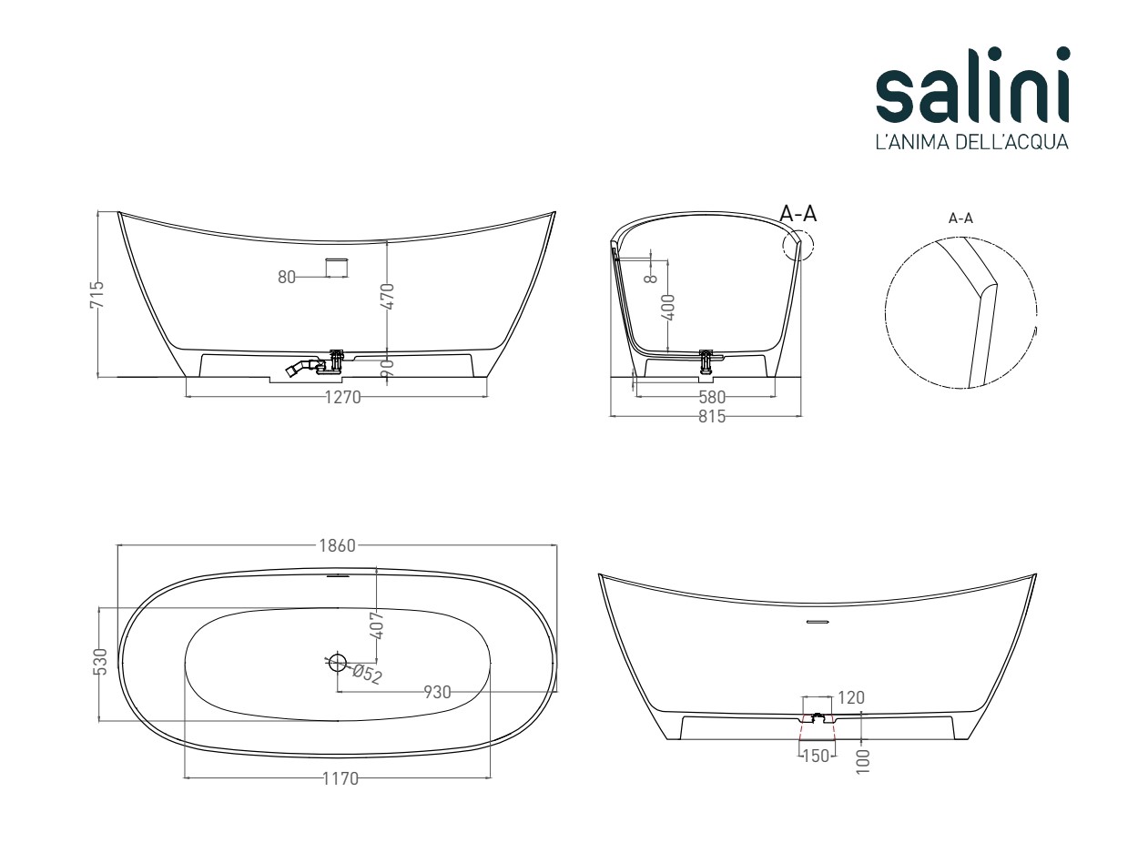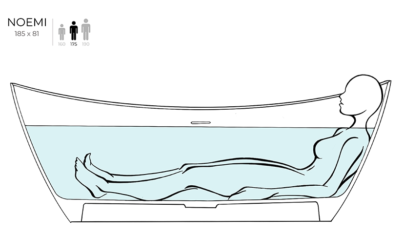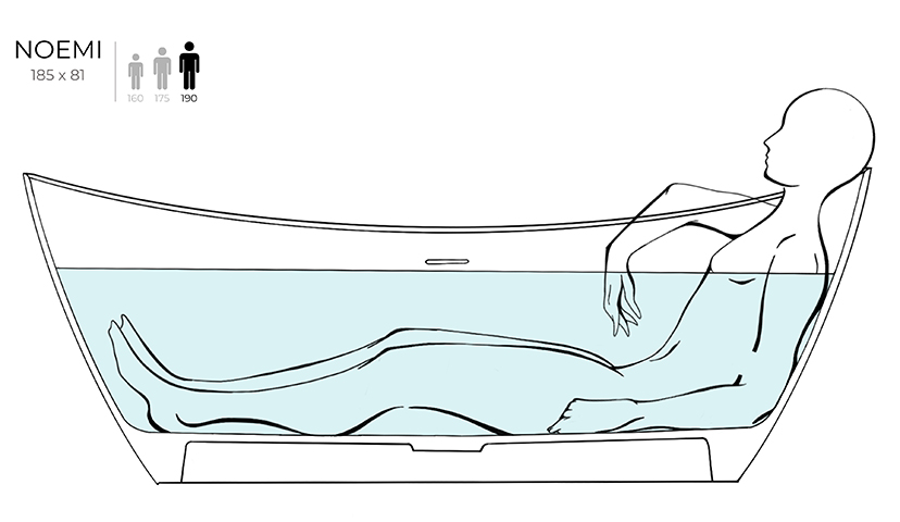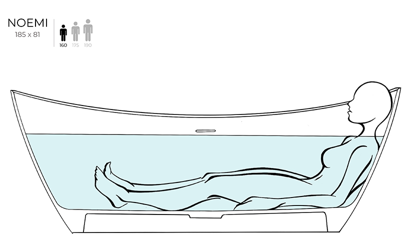 Главная / Каталог / Сантехника / Ванны / Salini NOEMI 185 Ванна свободностоящая 1860×815×715 мм, S-Sense - белый глянец